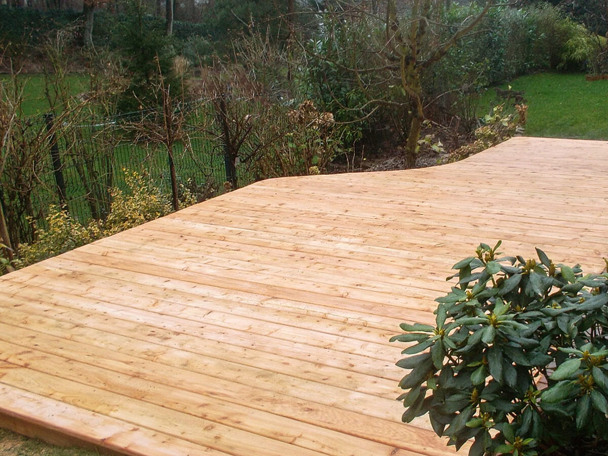 Wir fertigen individuelle Terrassen, Balkone und Holzdecks aus Lärchenholz an in welliger oder glatter Oberfläche.