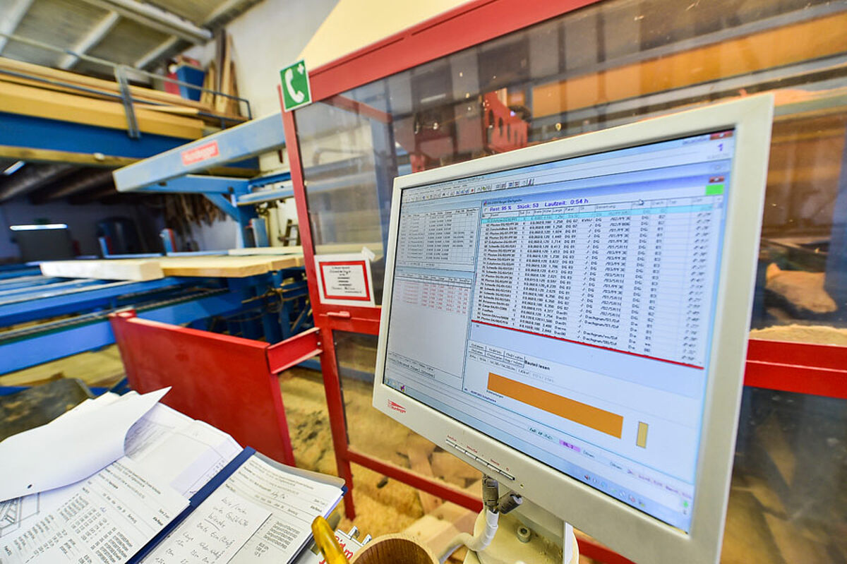 Mit unserer modernen Hundegger 5-Achs Abbundmaschine sind wir in der Lage, fast alle Bauteile und Holzverbindungen selbst herstellen zu können.