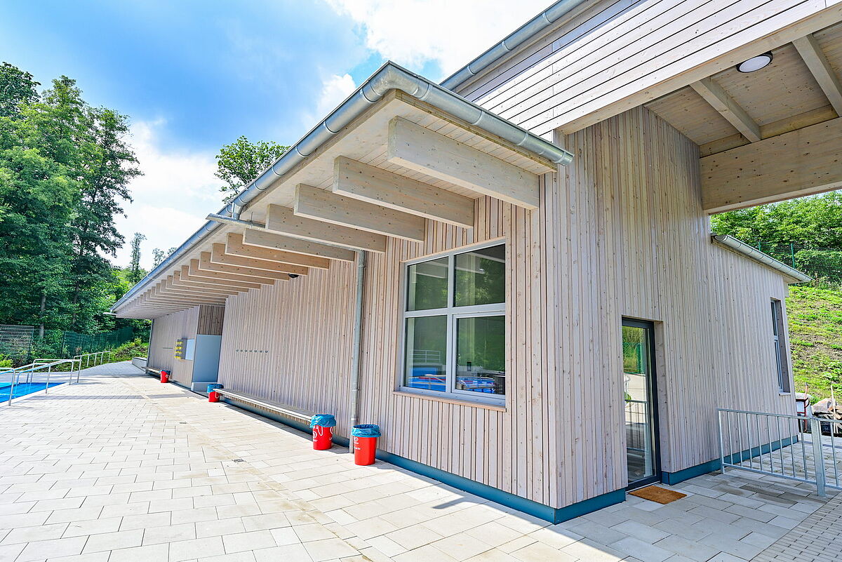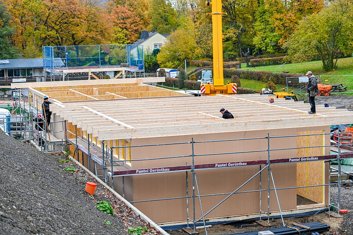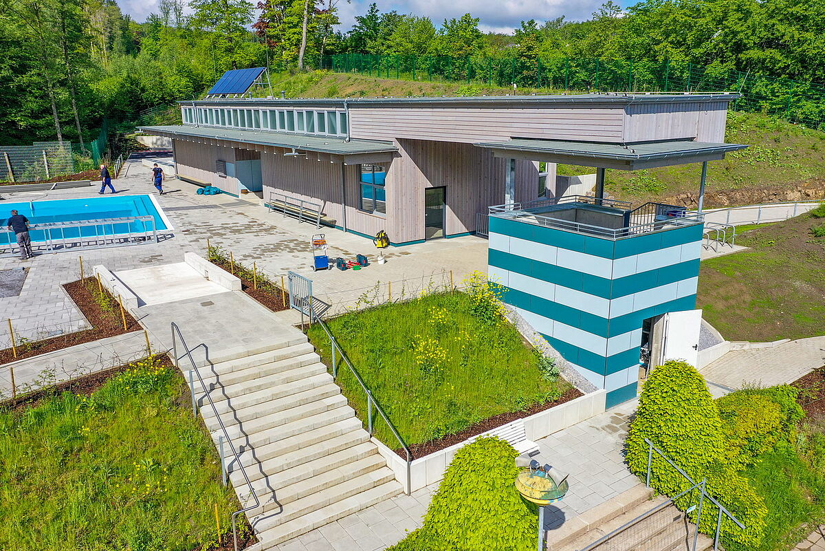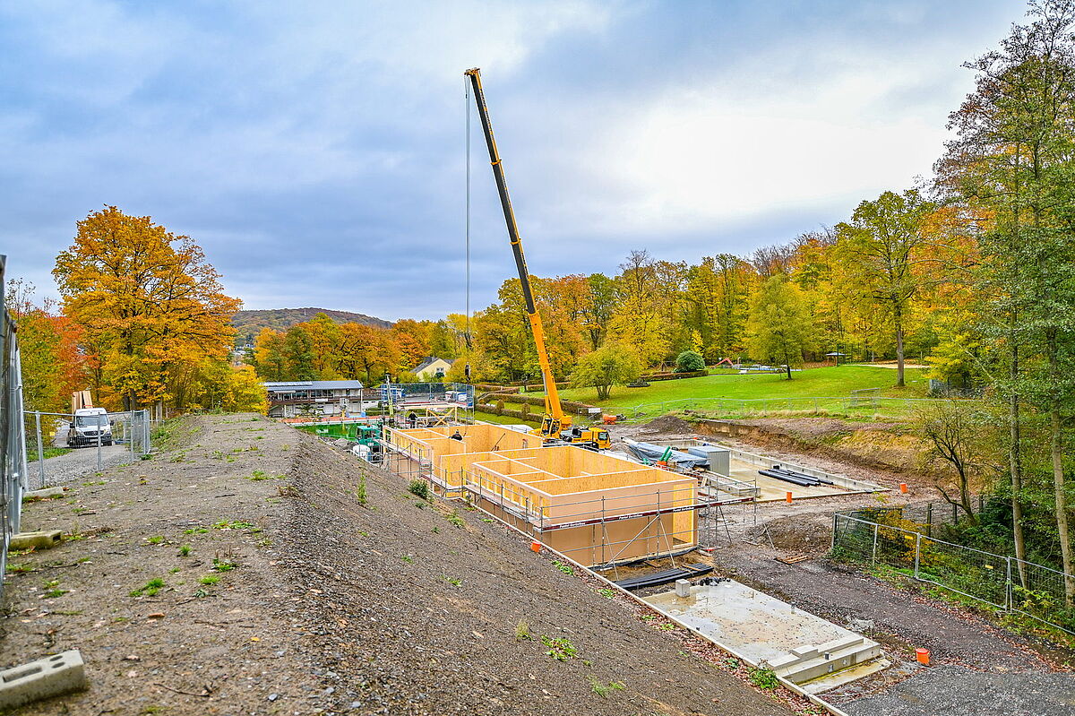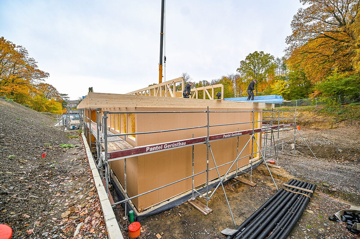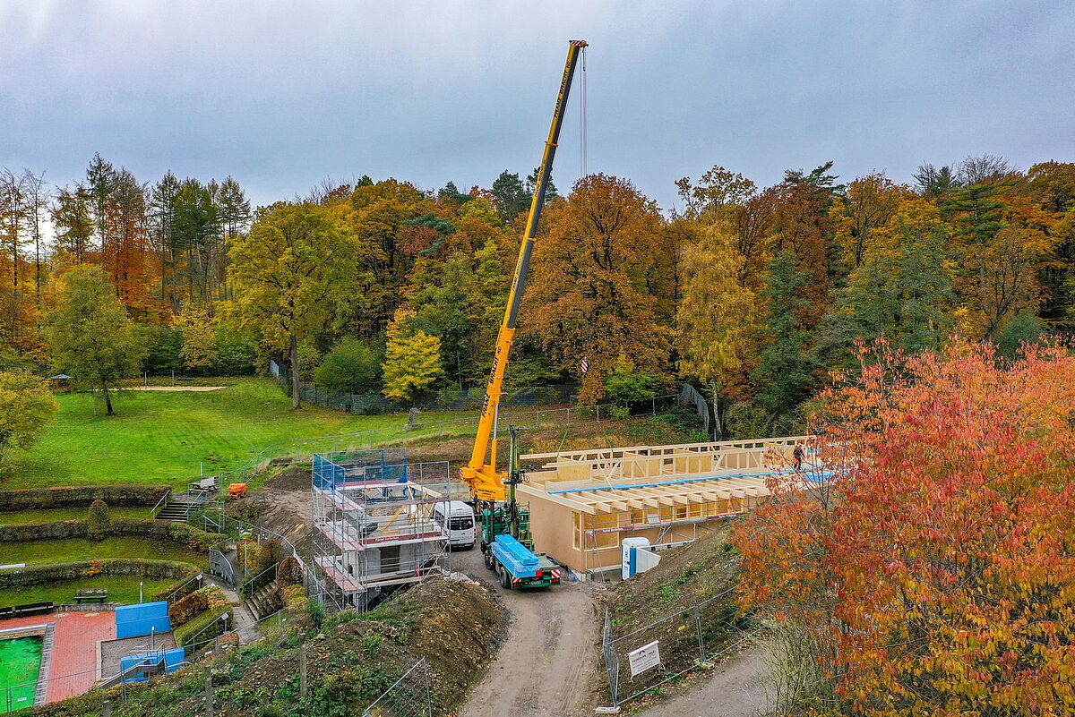 Neubau eines Umkleide- und Sanitärgebäudes im Zuge der Neugestaltung des Nichtschwimmerbereiches. Gefilmt von 2018-2021.