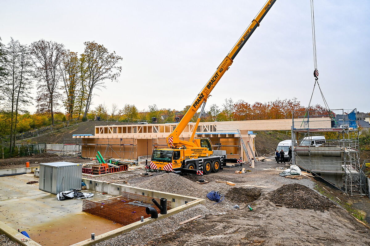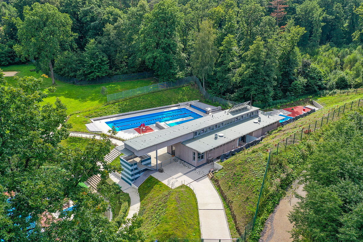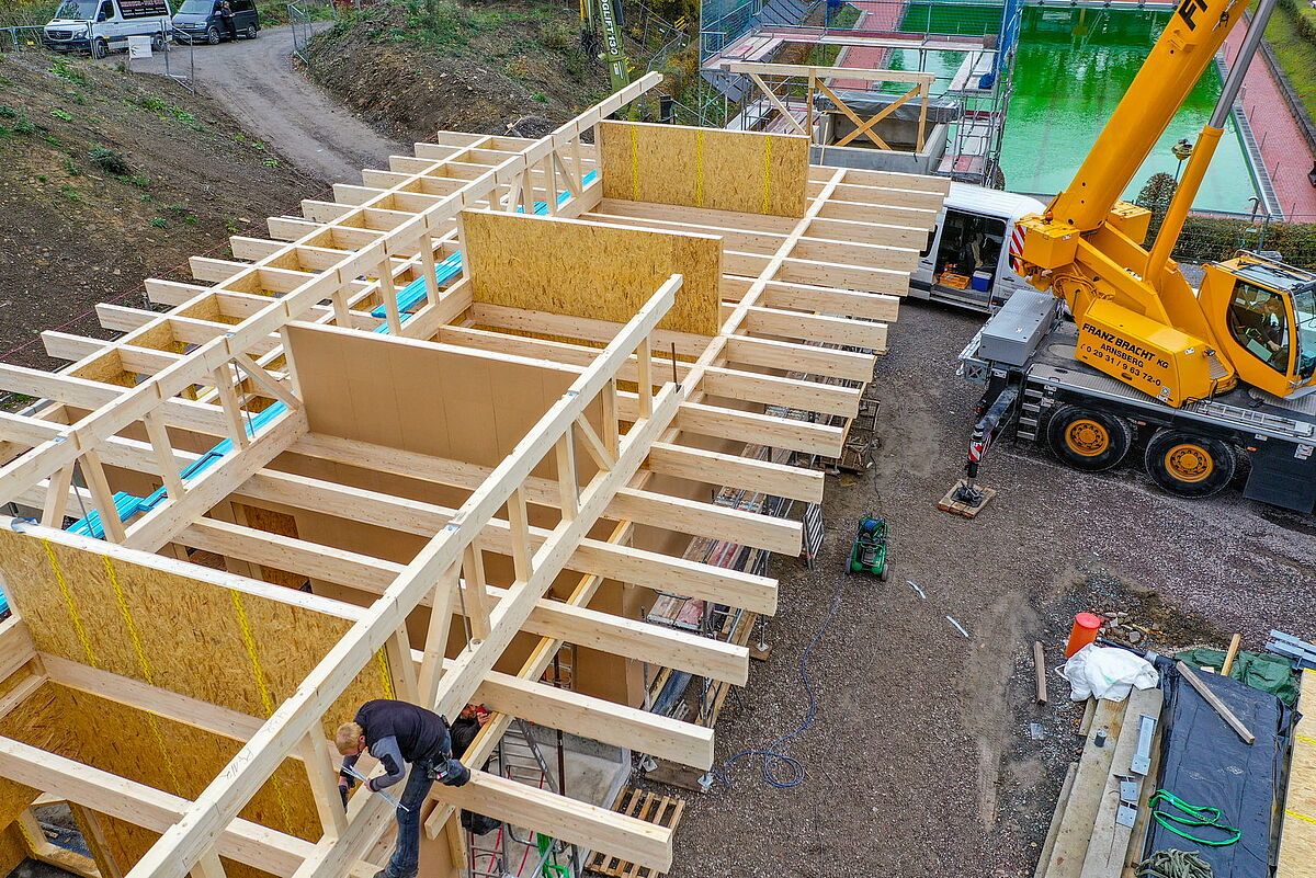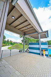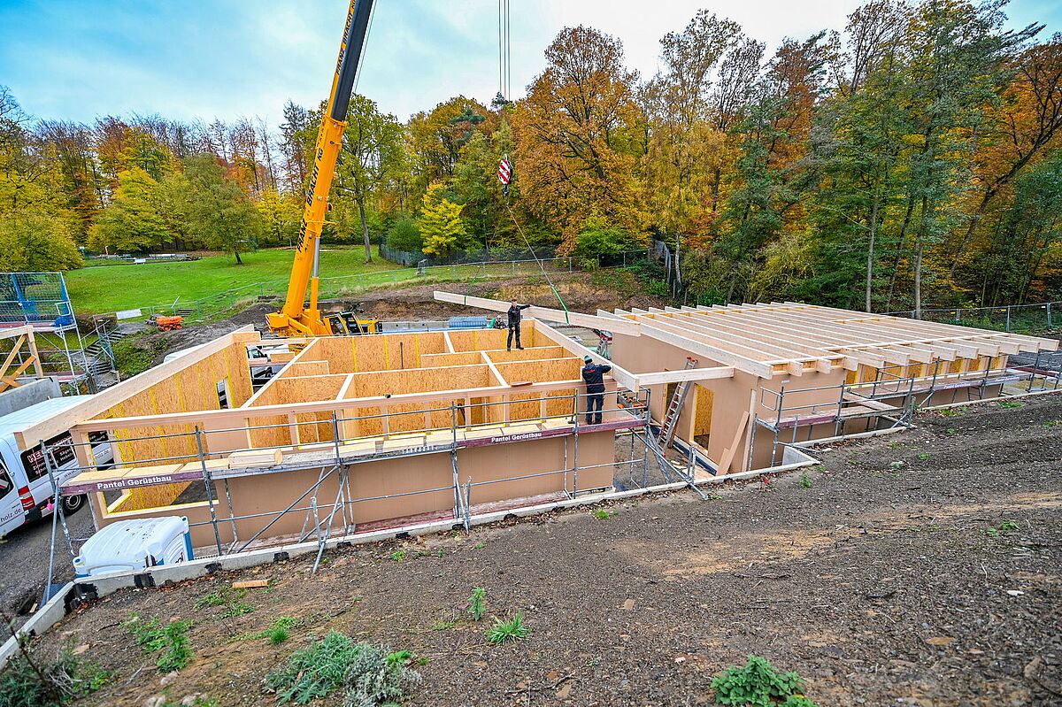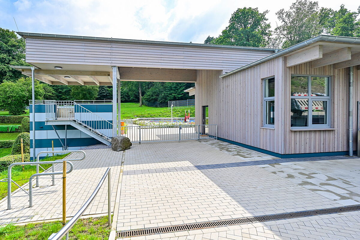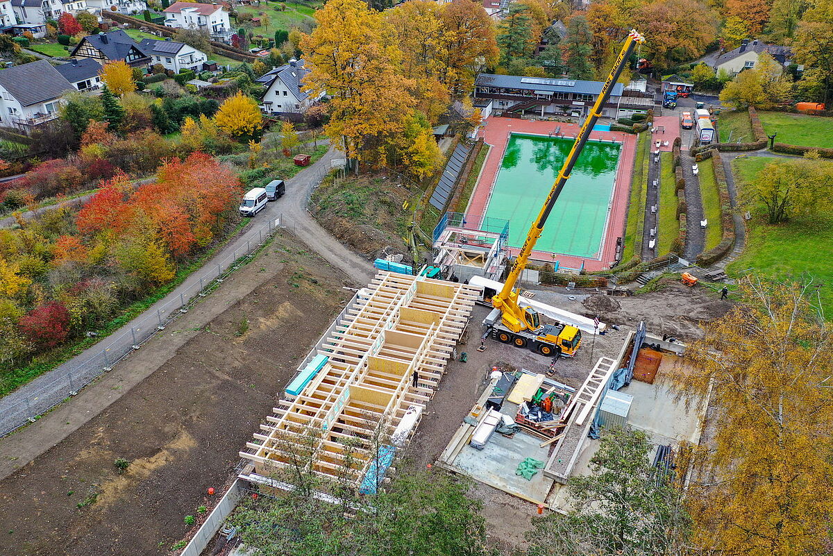 Neubau eines Umkleide- und Sanitärgebäudes im Zuge der Neugestaltung des Nichtschwimmerbereiches. Gefilmt von 2018-2021.