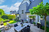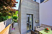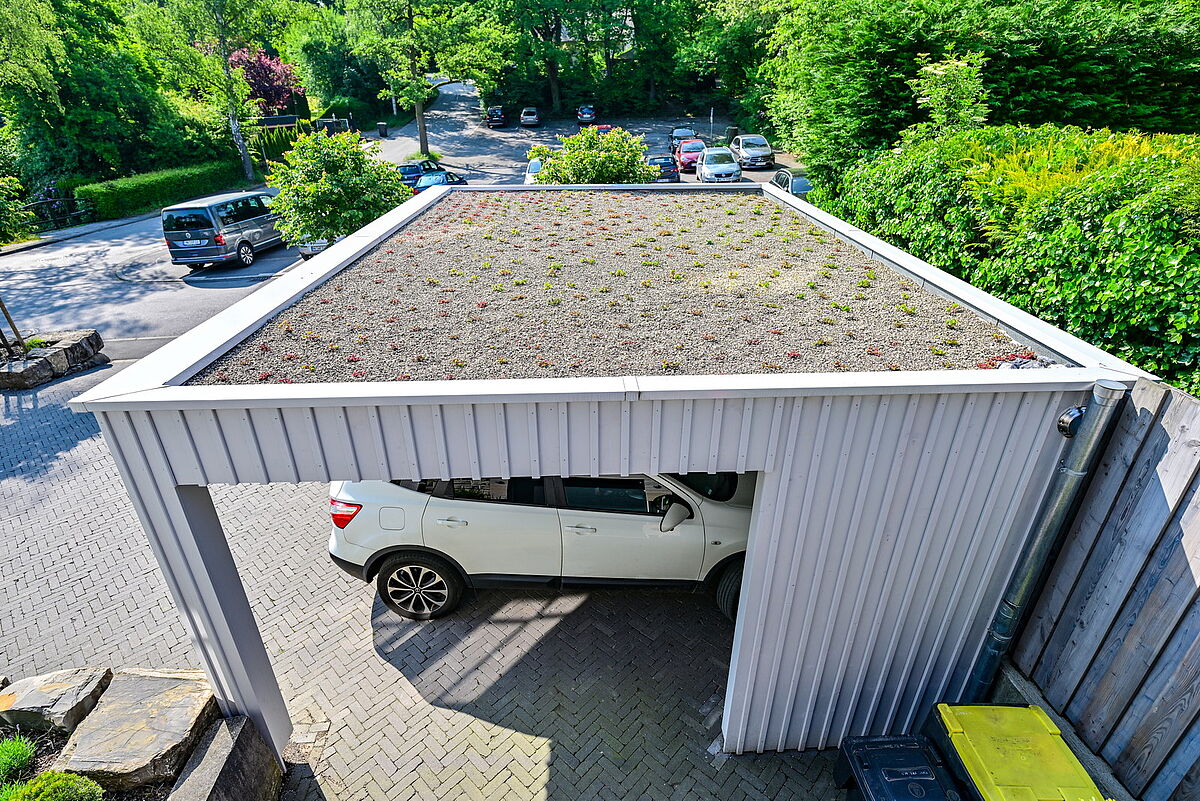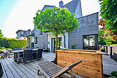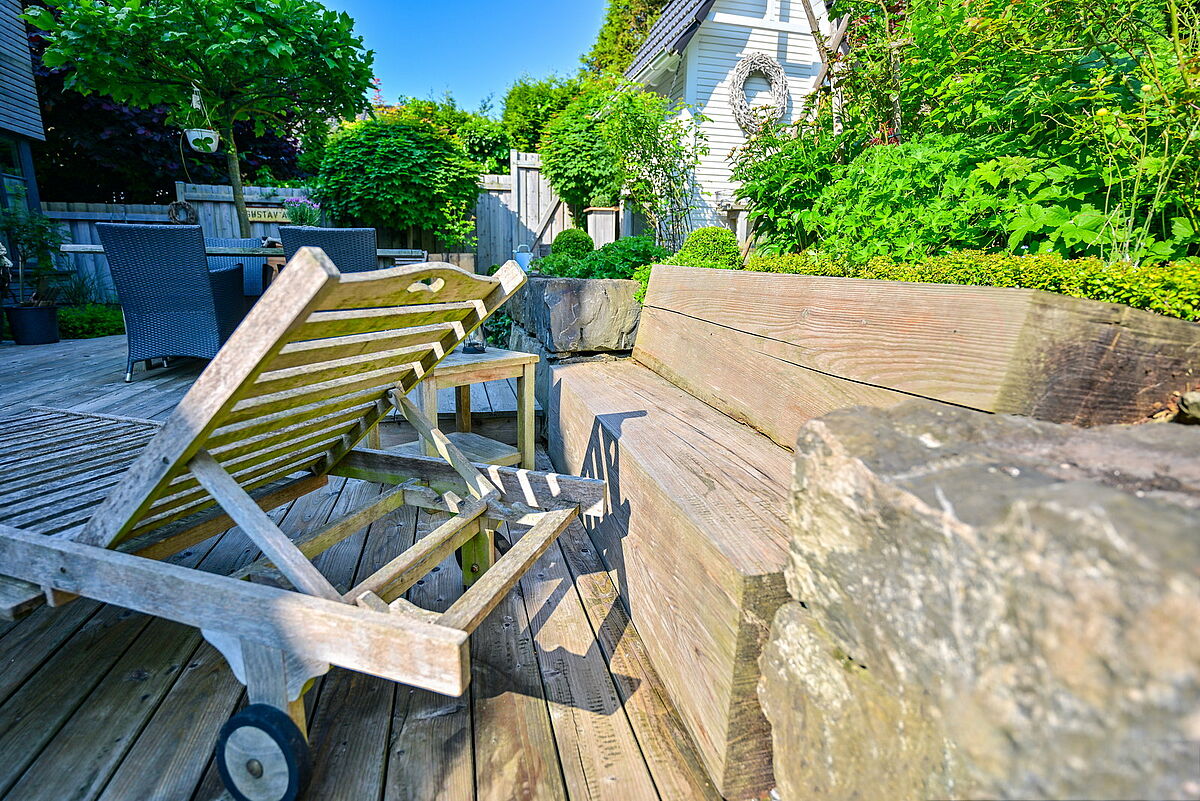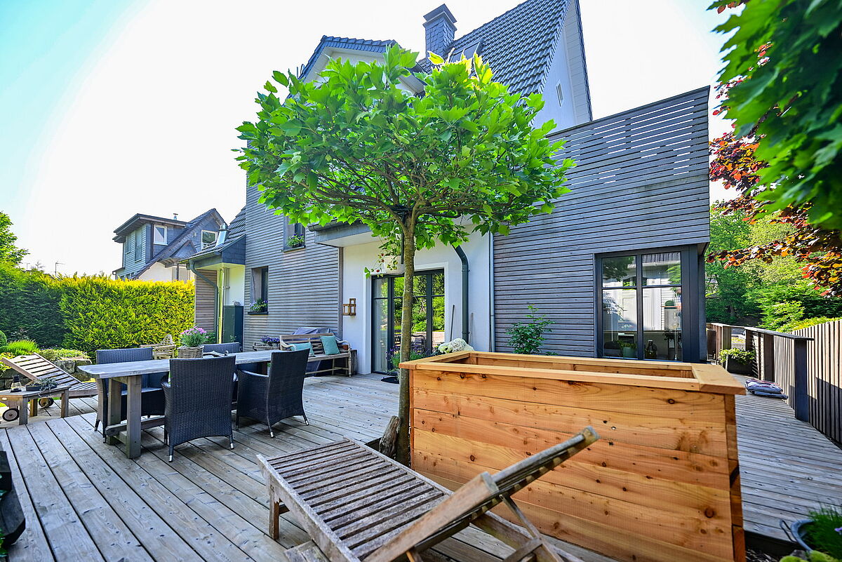 Im Obergeschoss entstand dadurch eine attraktive Sonnenterrasse mit Blick ins Grüne.